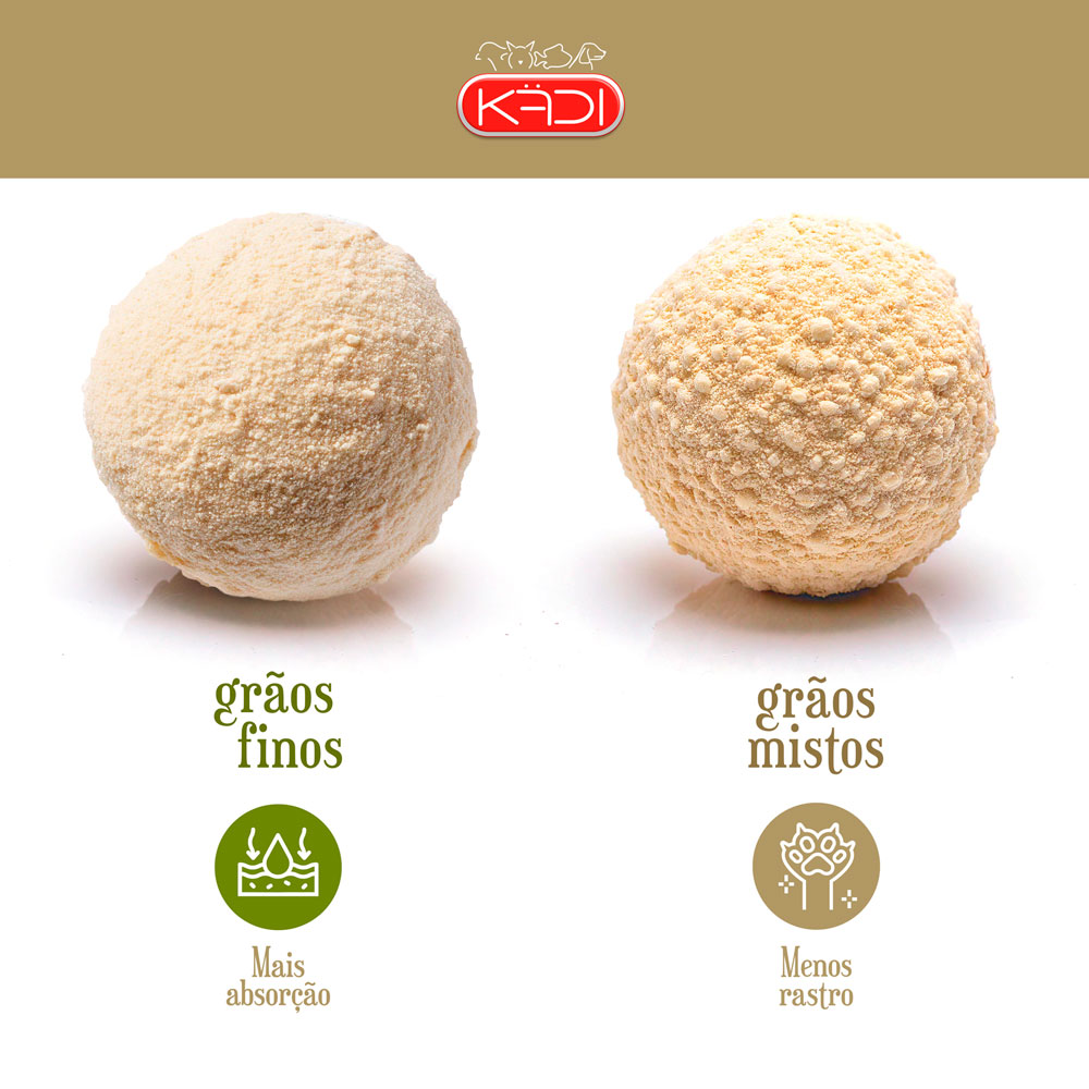 Nossa areia é feita 100% de milho e mandioca, livre de químicos, com excelente capacidade de absorção, formação de torrões firmes e controle natural de odores. Porque sustentabilidade e praticidade podem, sim, andar juntas.