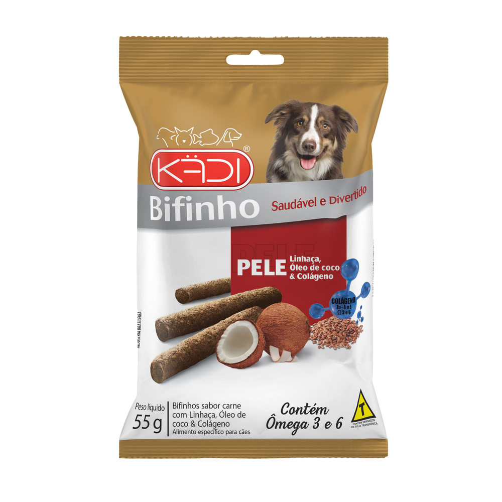 O Bifinho KÄDI Natural com Mamão & Chia é um petisco funcional desenvolvido com ingredientes naturais, sem corantes e com baixo teor de sódio, sendo uma excelente opção saudável e saborosa para cães adultos de todas as raças.